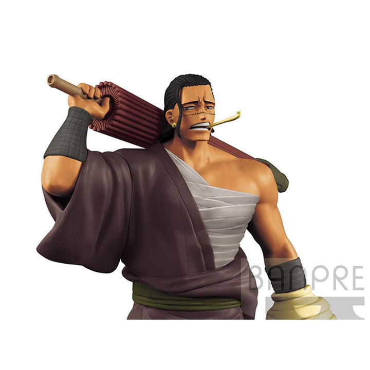 From the anime One Piece, collect all your favorite pirates in their Treasure Cruise World Journey attire. This figure of Crocodile is wielding a paper umbrella and his trademark hook. Each figure stands about 8 inches tall and features exquisite paint applications. A great looking figure with incredible detailed outfit. Add him to your collection today!