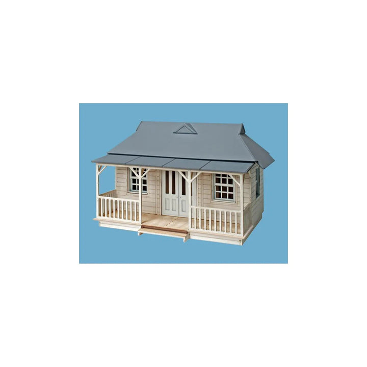Pack contains 1 laser-cut wooden pavilion building with plastic roof, door and window parts. Also suitable for use as a light railway station building, waiting room, cafe, summer house, etc. Requires glue and paint to complete. Footprint approx 80mm x 60mm