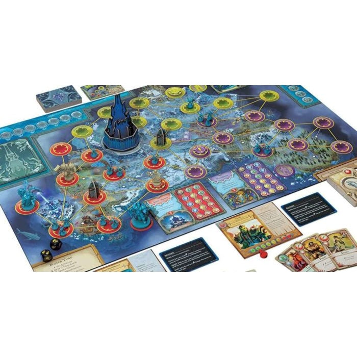 In World of Warcraft: Wrath of the Lich King, players journey to the frozen continent of Northrend to face the armies of the Lich King. This "Pandemic System" game showcases familiar mechanisms and gameplay, now tweaked to embrace the setting of the Wrath of the Lich King. Forts, temples, battlegrounds, and more populate the game board as you and your fellow heroes journey across the cold landscape. Along the way, you'll set up strongholds, complete quests, and do battle with legions of undead.