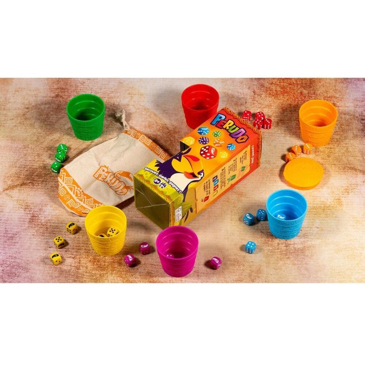 Perudo is the classic game of dice rolling, bluffing, and surprises! Based on generations of the ever-evolving and ever-delightful game of Liar's Dice, Perudo's style and color bring an all new attitude to this classic game. With rules easy enough for anyone to learn and a gameplay that keeps everyone on their toes, Perudo will leave you and yours asking to play again right away!
