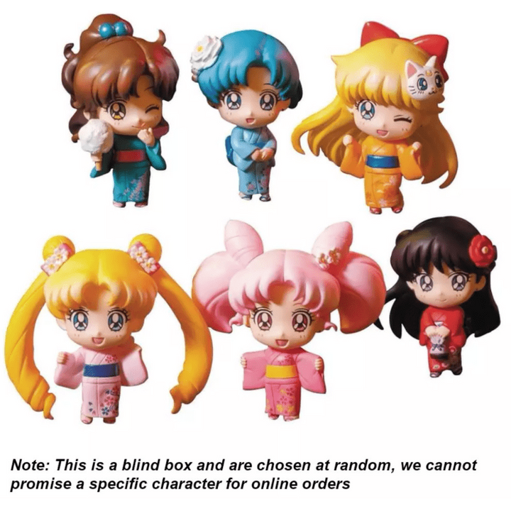 Celebrate the cherry blossom season with the out-of-this-world pretty Guardians of Sailor Moon! This Petit Chara mini figure assortment features a cherry blossom festival theme and includes possible characters: Usagi, Ami, Rei, Makoto, Minako, and Chibiusa dressed up in gorgeous kimonos. Each mini figure comes blind boxed so you don't know which character you'll get until you open it! Which one will you get? Collect them all!