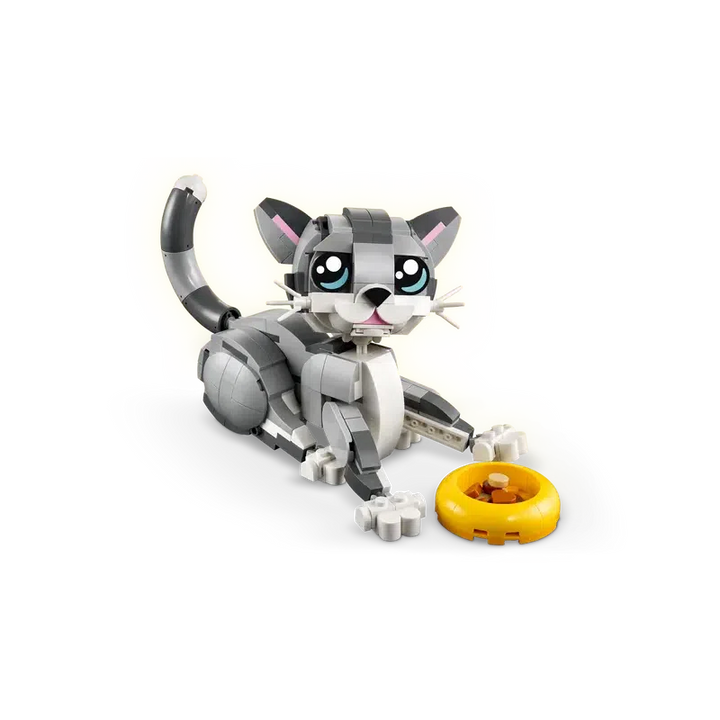 Treat pet-lovers aged 8 and up with this adorable LEGO® Creator 3in1 Playful Cat (31163) building set. The pet toy set features a cute cat toy with a posable head, ears, tail and legs, and accessories including a food bowl, toy mouse and ball of yarn, so kids can play out fun-filled stories.