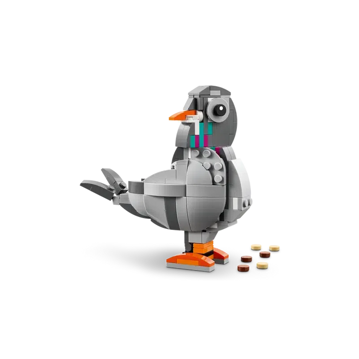 Girls and boys can build 3 different LEGO animal playsets with the same bricks: a posable cat toy who can sit, stand and pounce; a posable cute dog toy with a bone; and a pigeon toy with breadcrumbs. All 3scenes make this a great LEGO gift for kids to display and enjoy imaginative play.