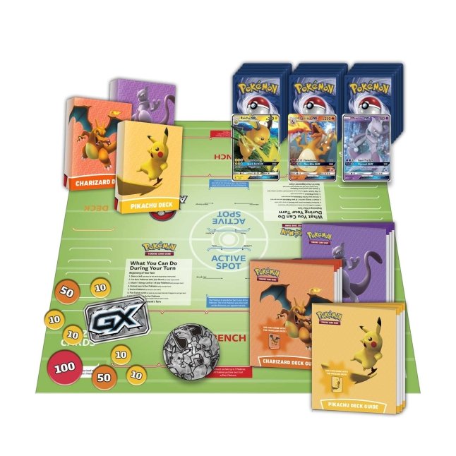 - Each deck includes a powerful special Pokémon: Charizard-GX, Raichu-GX, or Mewtwo-GX
