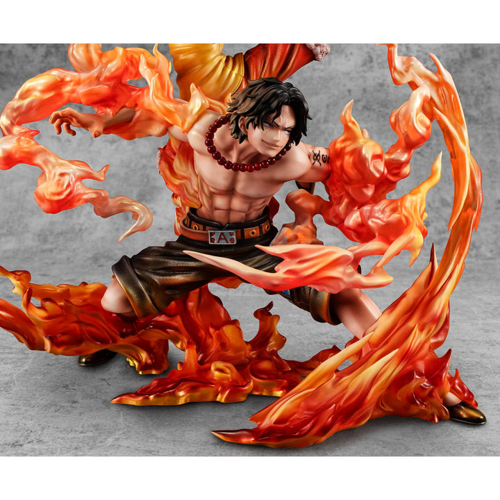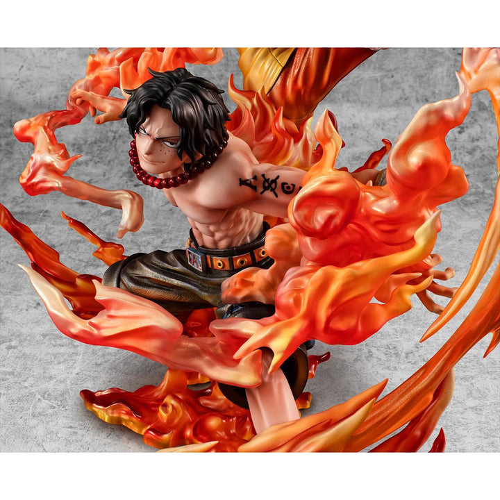 This figure captures what could be called the climax of the Summit War of Marineford, showing the two brothers standing together in a dynamic battle pose with contrasting expressions. Every inch of the figure has been sculpted and painted with breathtaking quality, right down to the extravagant effects of Ace's Flame-Flame Fruit powers.