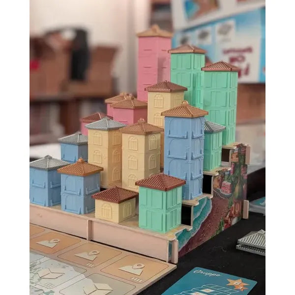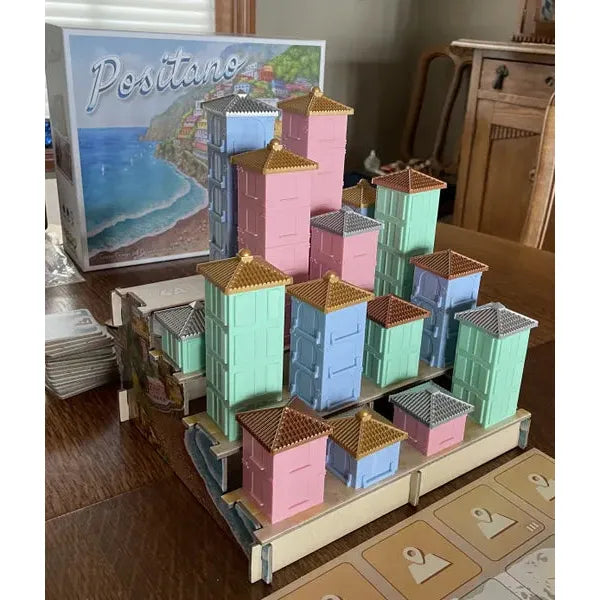 Discover the charm of Italian architecture in this engaging expansion! Positano invites you to construct stunning clifftop resorts while competing for the most coveted seaside views. Master the strategic auction system each round—bid wisely on tiles that determine your building placement, resource stockpile, and construction quality. Navigate three-dimensional gameplay as you balance competing for premium locations with collecting gelato and pursuing dynamic goal cards. With randomized objectives in every game, you'll face fresh strategic challenges and endless replayability. Perfect for players seeking depth, beautiful components, and memorable competitive moments.