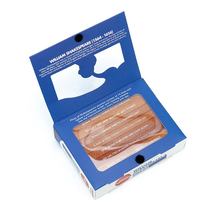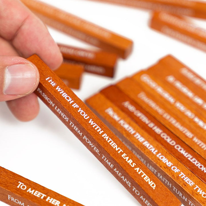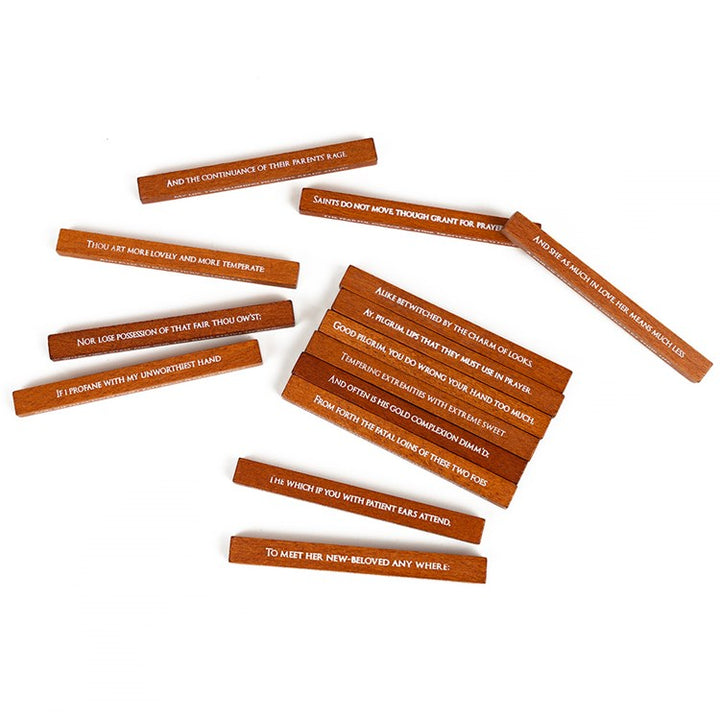It’s time to channel a little of Shakespeare’s poetic license! Each of these wooden blocks has lines from four of the great writer’s famous sonnets. Can you arrange them in the correct order and then recite them?