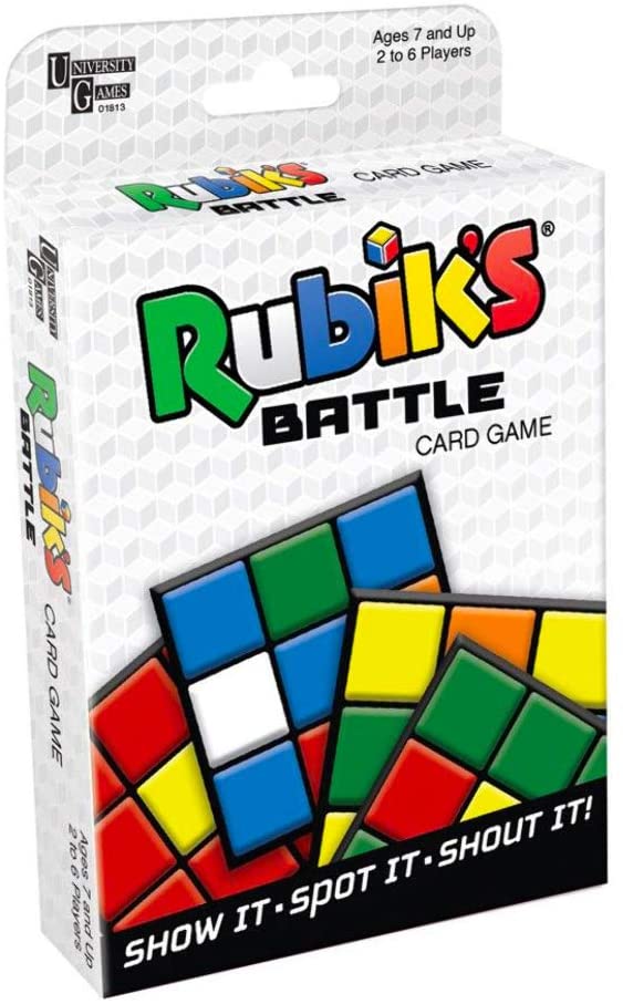 Show It, Spot It, Shout It! Think Fast! Rubik’s Battle brings the quick-thinking brain teaser challenge of Rubik’s to a fast-action Card Game that’s fun for the whole family. Earn Rubik’s Battle Cards by shouting out the unique Cubie color first. The player holding all of the Rubik’s Battle Cards at the end wins!