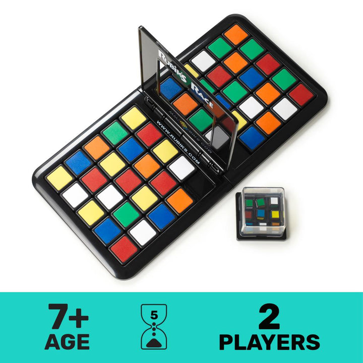 - CLASSIC BOARD GAME: Rubik’s Race is a high intensity two player board game designed to get your brain and fingers racing at an extreme pace. A strategy racing game like no other.