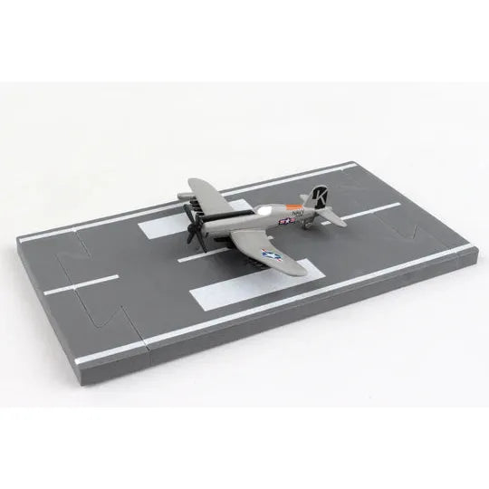 This fabulous line of diecast aircraft is great for the young collector. Runway 24 features a large variety of vintage and modern aircraft, ranging from bi-planes to the most recent jet and helicopters, in military, commercial and private body styles and in a variety of colour schemes. Each model also includes a section of runway material. Straight and intersection runway sections are also sold separately. Runway is 6" Long. Model size varies from 3" to 5" depending on model type.