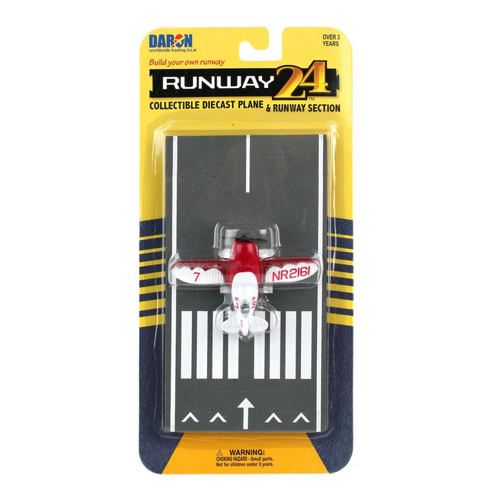 This fabulous line of diecast aircraft is great for the young collector. Runway 24 features a large variety of vintage and modern aircraft, ranging from bi-planes to the most recent jet and helicopters, in military, commercial and private body styles and in a variety of color schemes. Each model also includes a section of runway material. Straight and intersection runway sections also sold separately. Runway is 6" Long. Model size varies from 3" to 5" depending on model type.
