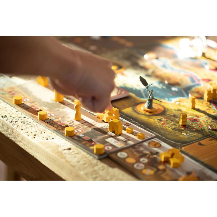 Every part of Scythe has an aspect of engine-building to it. Players can upgrade actions to become more efficient, build structures that improve their position on the map, enlist new recruits to enhance character abilities, deploy mechs to deter opponents from invading, and expand their borders to reap greater types and quantities of resources. These engine-building aspects create a sense of momentum and progress throughout the game. The order in which players improve their engine adds to the unique feel of each game, even when playing one faction multiple times.