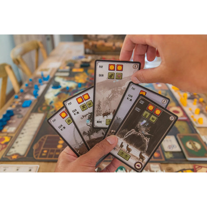 Scythe gives players almost complete control over their fate. Other than each player’s individual hidden objective cards, the only elements of luck are encounter cards that players will draw as they interact with the citizens of newly explored lands and combat cards that give you a temporary boost in combat. Combat is also driven by choices, not luck or randomness.