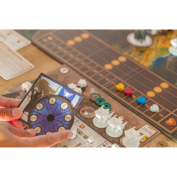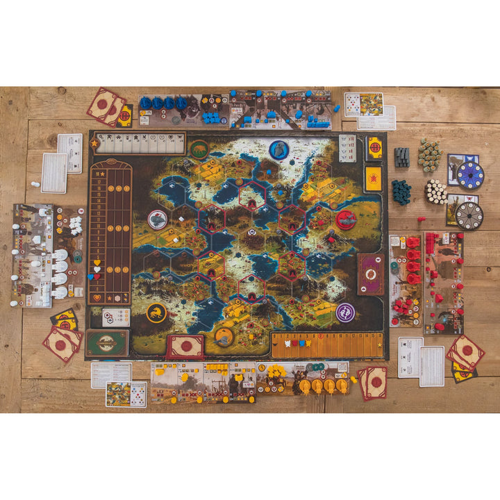 Each player begins the game with different resources (strength, victory points, movement capabilities, and popularity), their choice of several faction-specific abilities, and a hidden goal. Starting positions are specially calibrated to contribute to each faction’s uniqueness and the asymmetrical nature of the game.