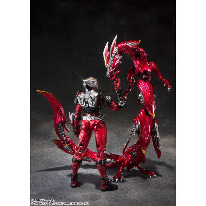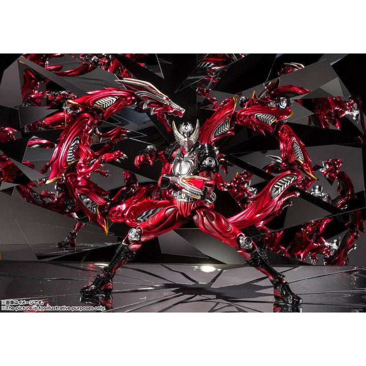 Masked Rider Ryuki and visual designer Masaki Asai make for an unbeatable combination! In this S.I.C. figure he captures the character wearing the special gear designed by Shiro Kanzaki based on his study of Mirror World! Even better, it comes with a huge, fully posable Dragreder! The body connector sizes match, so you can swap gear between the two. The set includes four right optional hands, the Dragreder, Strike Vent Grip, Dragsaber, cards, joint connector, and a stand.