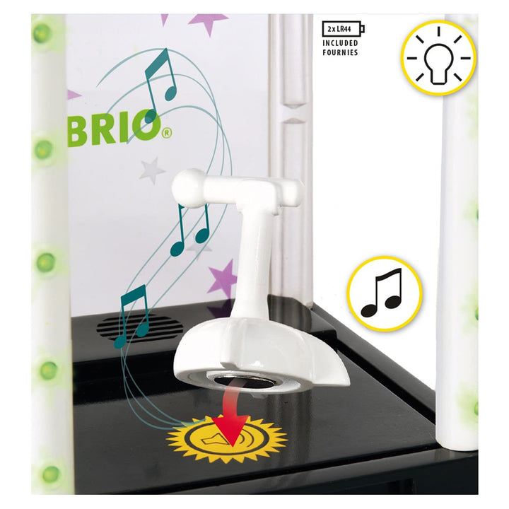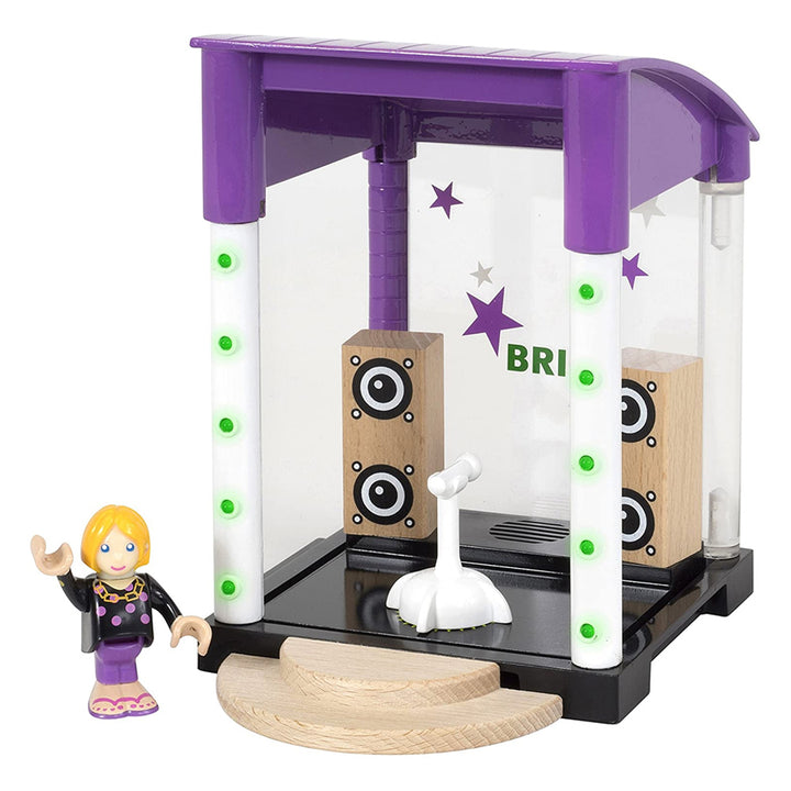 Be a star for a day and sing on your own stage. Place the microphone on the floor and the music starts along with blinking lights - let the show begin! The Brio Singing Stage is a high quality wooden toy made by the Swedish company Brio, the world's largest manufacturer of toys which are both educational and fun. Be a star for a day at your village singing stage. Place the microphone on the floor and the music starts along with blinking lights - let the show begin in the Brio world.