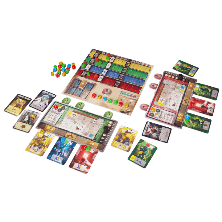 This robot factory needs you! With the assistance of your trusty animal companions, mechanical marvels will soon start rolling off your assembly line — then you just need to add some spark to bring those robots alive. Explore the junkyard to gather dice for constructing robots or upgrading your factory. Keep a keen eye on your line-up of charming animal aides; they're the cornerstone of your winning strategy.