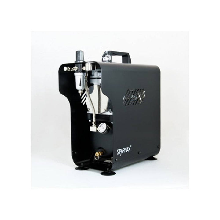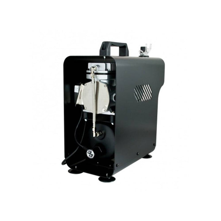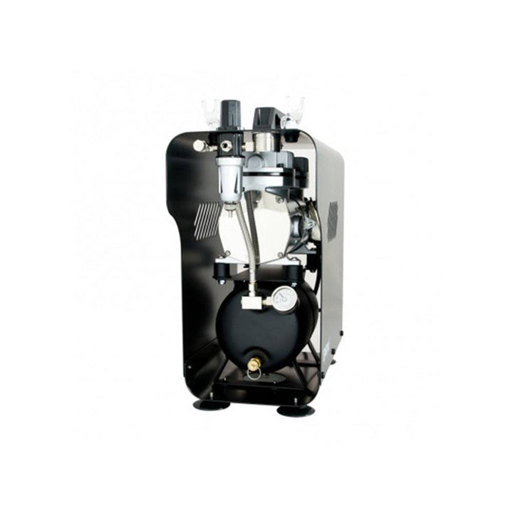 Offering unparalleled versatility, the TC-620X headlines our Inspire series compressors. Epitomizing style and functionality, the TC-620X has enhanced portability and is easy to store thanks to its lightweight metal housing; it will blend into your work environment seamlessly and protect the associated regulator, filter, and gauge accessories. With two air outlets and an accompanying air tank, the TC-620X enables users to manage their workspace with greater flexibility and efficiency. With the extra air outlet, you can now connect airbrushes beforehand and switch between use of airbrushes. Clean and stable air, controlled for your desired applications. This is a dual cylinder compressor.