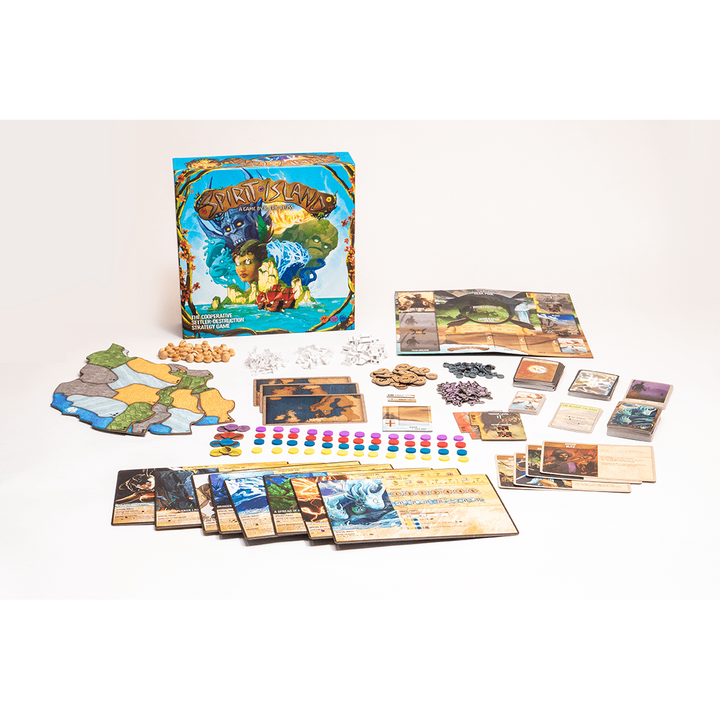 Spirit Island is an award-winning, cooperative, settler-destruction strategy game for 1 to 4 players designed by R. Eric Reuss and set in an alternate-history world. Players act as different spirits of the land, each with their own unique elemental powers, forced to defend their island home from colonizing Invaders spreading Blight and destruction. Players work with their fellow Spirits and the Dahan (local islanders) to increase their power and drive the invading colonists from their island in this deep and complex area-control game!