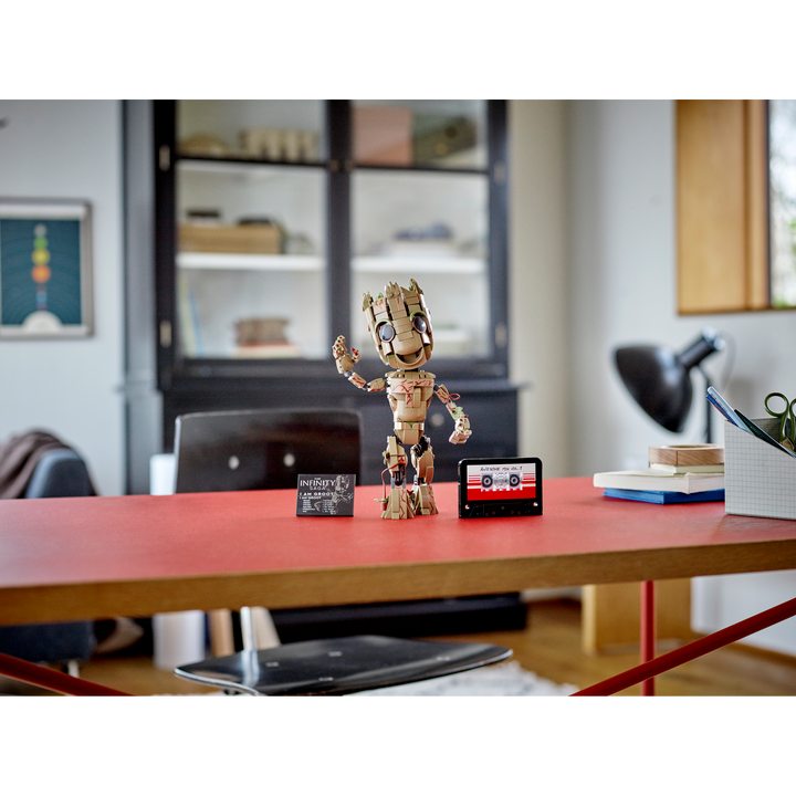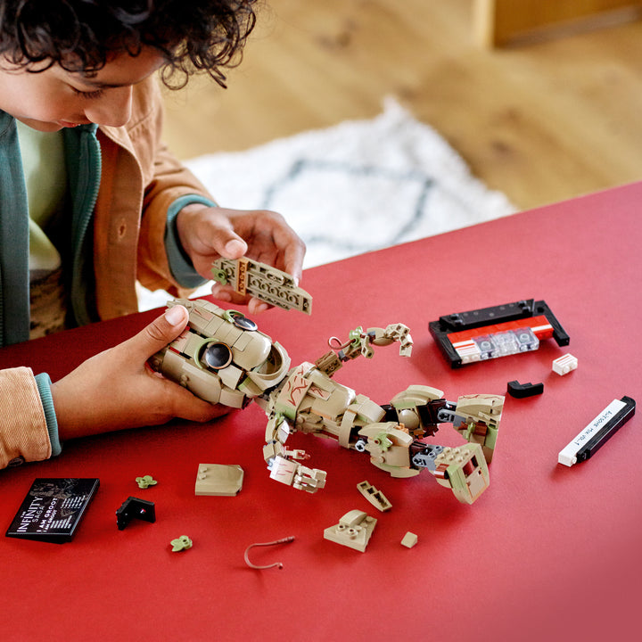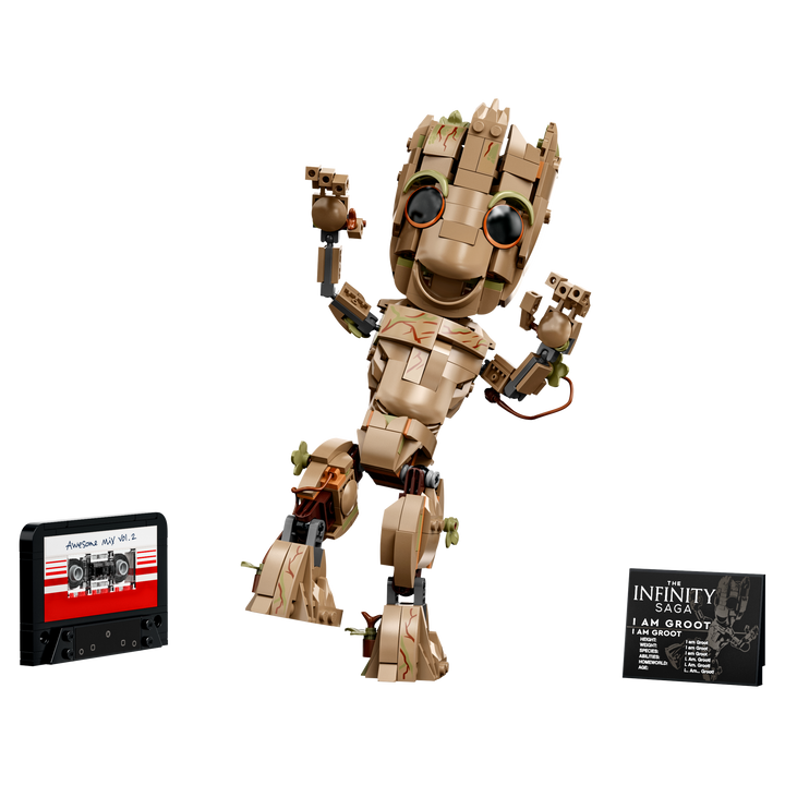 - Iconic Marvel character – Kids build their own Baby Groot, from Marvel Studios’ Guardians of the Galaxy Vol. 2. The set also includes a pretend cassette tape and display nameplate