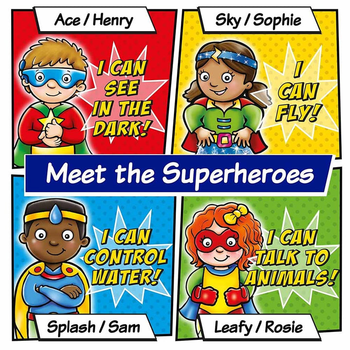 The game features four different child superheroes, including one who can fly and one who can talk to animals. Children can get creative and have fun inventing superhero stories about the characters! There are also superhero fact files on the reverse of the boards for children to find out more information about their chosen superhero.