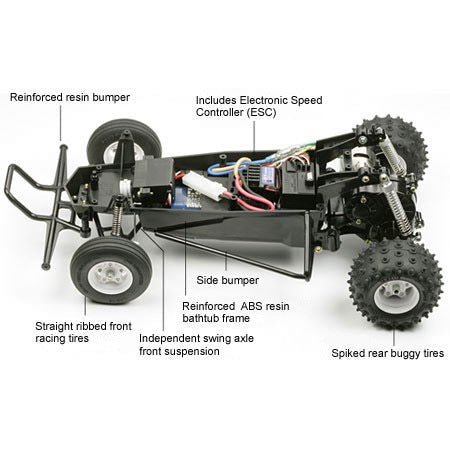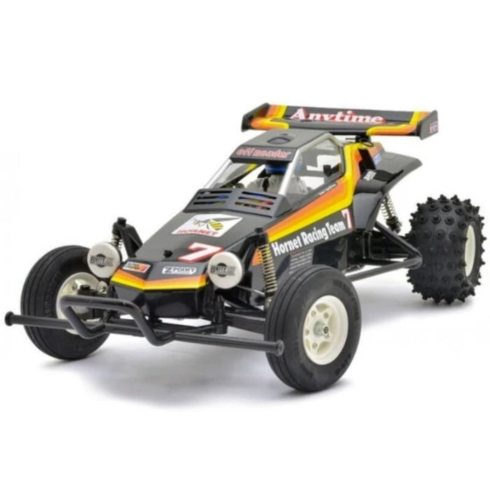 The Tamiya Hornet is a true legend in the world of RC cars. Its sleek design, combined with its agile handling and durable construction, has made it a favorite among RC enthusiasts for decades. This re-release captures all the classic appeal of the original, with the added benefit of a modern ESC for enhanced performance.