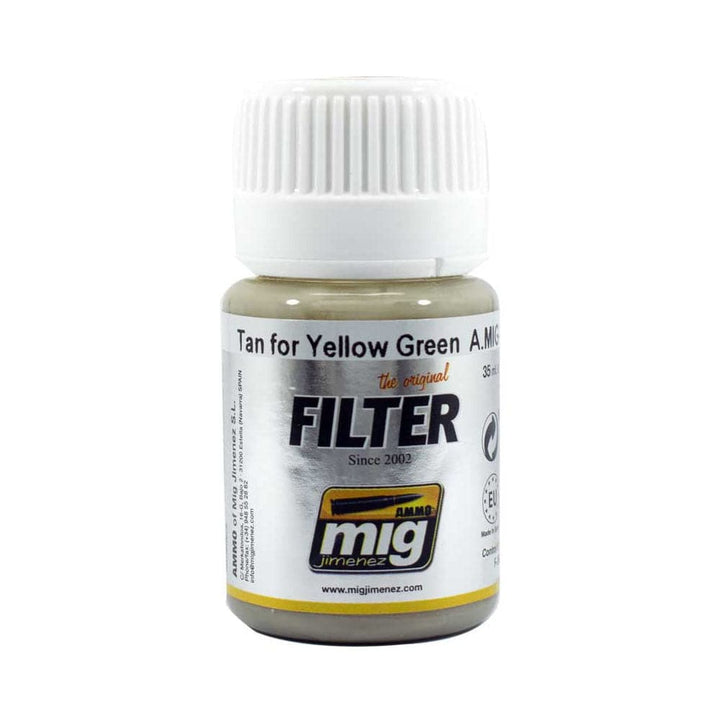 Filter easy and ready to use directly on your model.These filters are specially designed for use on green surfaces, such as Russian, US or UK vehicles; but also on aircraft, robots or any other dark surface. Use the filters by moistening a brush and applying it without flooding the surface, to enrich hues in your models, unify camouflage, or highlight areas with a different tone. With these products we will avoid mixing paints, looking for the correct dilution, or searching for the correct colors for our vehicle. These filters are enamel based and can be cleaned or diluted with Odorless Enamel Thinner. 30 mL jar.