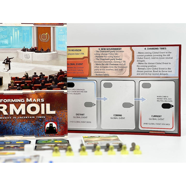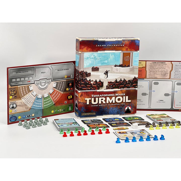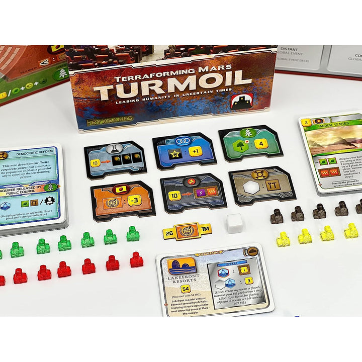 Turmoil, the fifth expansion to Terraforming Mars, takes players back to Mars, and the struggle for control and progress of human society on a big and dangerous planet.