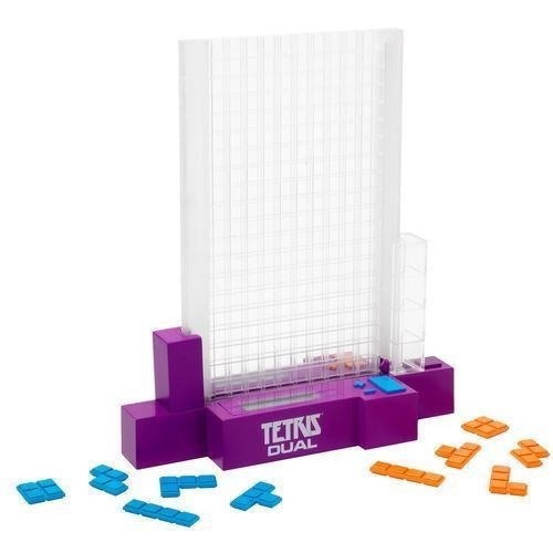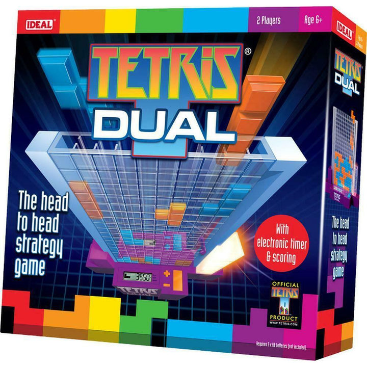 Tetris Dual is a fast head-to-head, tabletop strategy game based upon. Tetris is one of the most popular electronic games of all time. The object of the game is to create the Tetrimino shapes displayed on the LCD screen, by dropping them into the play grid. Score points by placing a piece next to one of your own colours, but you can complete more points by completing a full row. Don't leave any holes or you will lose points! Use some strategy to block your opponent, making it easier to play your remaining Tetriminos and complete the most rows.