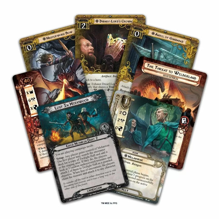 This expansion includes all of the scenarios originally featured in The Wilds of Rhovanion and the Ered Mithrin cycle of content, now repackaged into one box along with all-new campaign content.