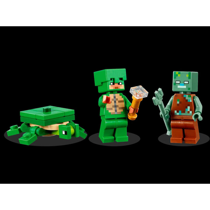 - Animal-care toy for gamers – This LEGO® Minecraft® toy includes a buildable Minecraft house with 3 Minecraft figures: a Turtle Skin Warrior, Turtle and a Drowned