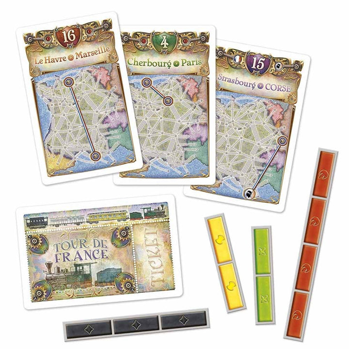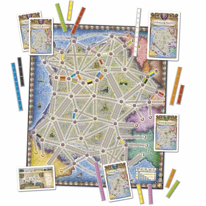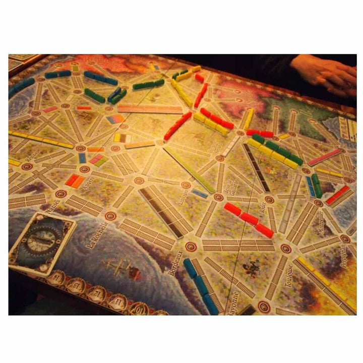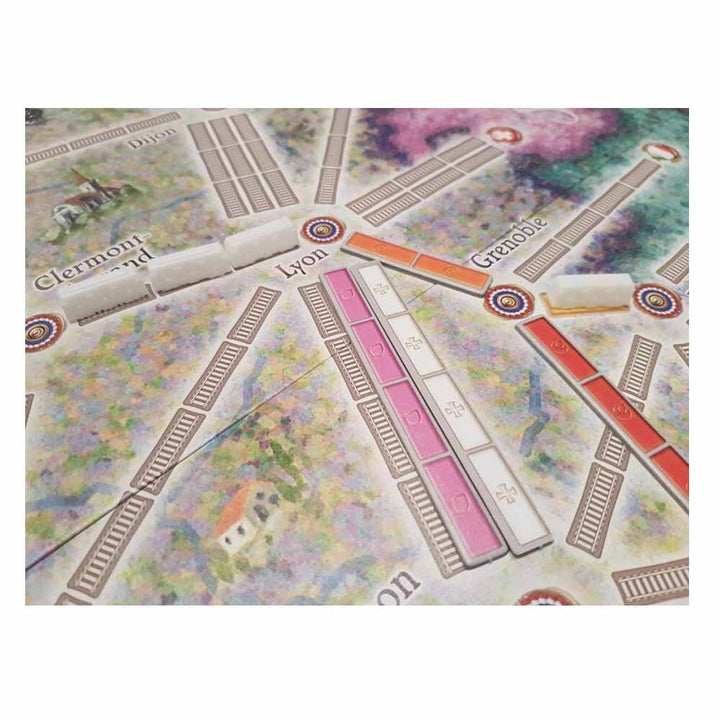 Dive into thriving French culture during Impressionism and the Industrial Revolution; street cafes, 'Starry Night', Paris boulevards, and Notre-Dame. The French railroad system is a blank canvas just waiting for your masterful strokes. However, before you can start claiming routes, you'll need to lay the tracks! Watch for your opponents, though, because they might claim the route you just spent so much time building.