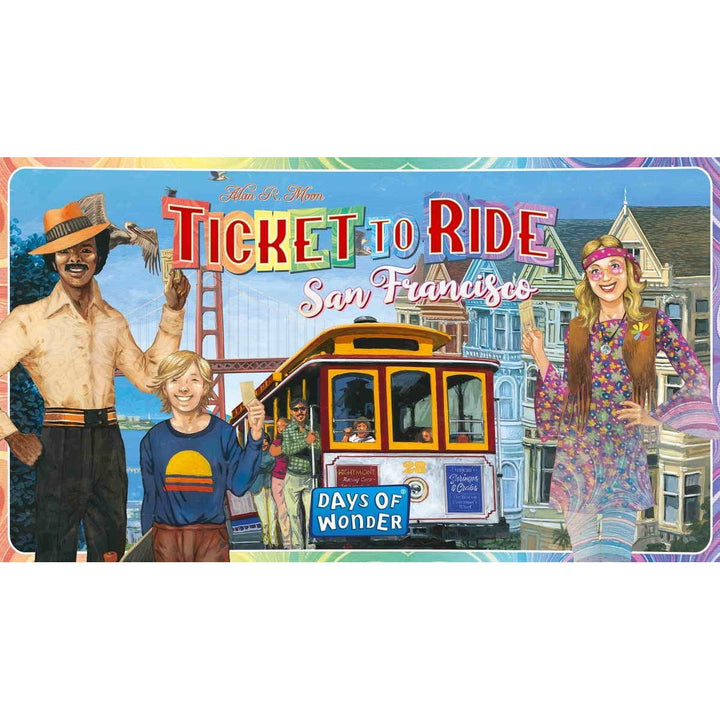 Ticket to Ride: San Francisco features the familiar gameplay from the Ticket to Ride game series — collect cards, claim routes, draw tickets — but on a map of 1960s San Francisco that allows you to complete a game in no more than 15 minutes.