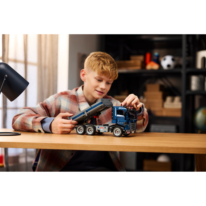 - Construction site adventures – The LEGO® Technic™ Tipping Dump Truck toy set lets kids aged 9 and up create fun construction site role-play stories