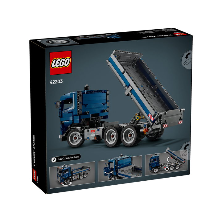 Kids aged 9 and up can create endless construction site adventures with the LEGO® Technic™ Tipping Dump Truck toy (42203). This blue construction truck toy vehicle set lets kids aged 9 and up imagine a busy working day operating their tipper truck. Steer the truck into position then turn the knob on the side of the truck to tip the lid. Open the doors to see inside the cab, then drive the truck to its next construction-site task. LEGO Technic vehicle sets feature realistic movement to introduce young LEGO builders to the universe of engineering. This building kit for kids is a fun birthday gift or any-occasion treat for kids who love LEGO vehicles or construction truck toys. Kids can enjoy an easy and intuitive building adventure with the LEGO Builder app, where they can zoom in and rotate models in 3D, save sets and track their progress.