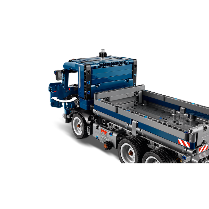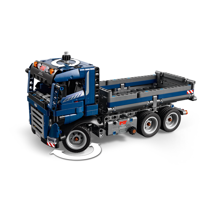 Keep things moving at the construction site with this LEGO® Technic™ Tipping Dump Truck! Steer the truck into position. Turn the knob on the side of the truck to tip the lid. Open the doors to see inside the cab, then drive your hard-working truckto its next construction-site task.