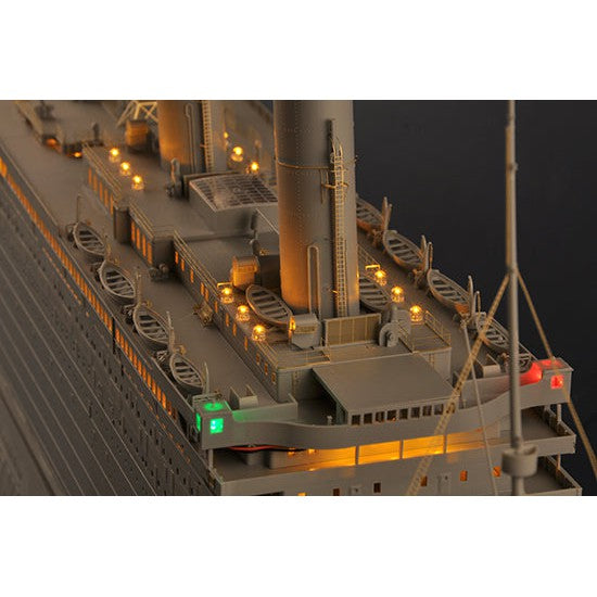 03719 1/200 Titanic with LED Light Set Plastic Model Kit by Trumpeter delivers a stunning and detailed replica, perfect for history buffs and model enthusiasts alike.
