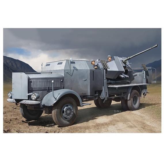 09593 1/35 L4500A mit 3.7cm Flak 37 Plastic Model Kit by Trumpeter delivers a detailed replica for military vehicle enthusiasts and experienced scale model hobbyists interested in German WWII anti-aircraft vehicles.
