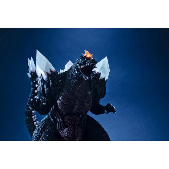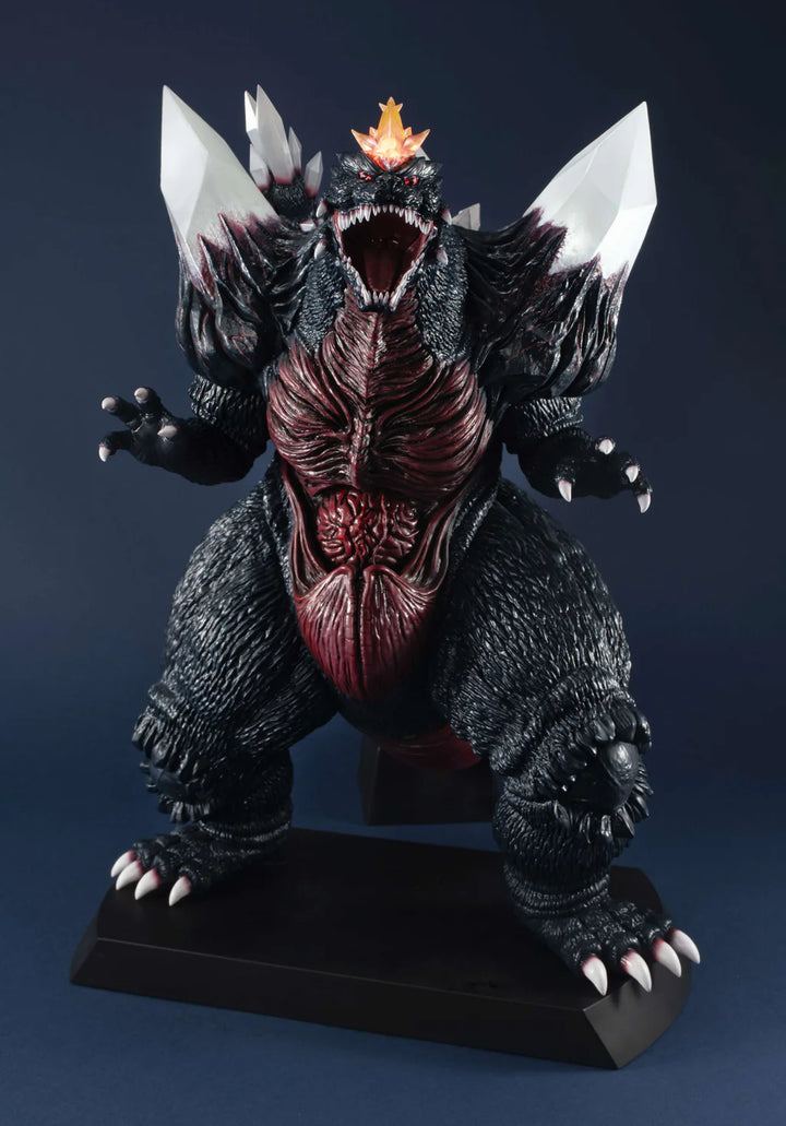 The figure stands an impressive 360mm tall and features detailed elements such as his distinctive crystals, fangs, dorsal fins and internal organs. It also includes lighting and sound effects to enhance its formidable presence.