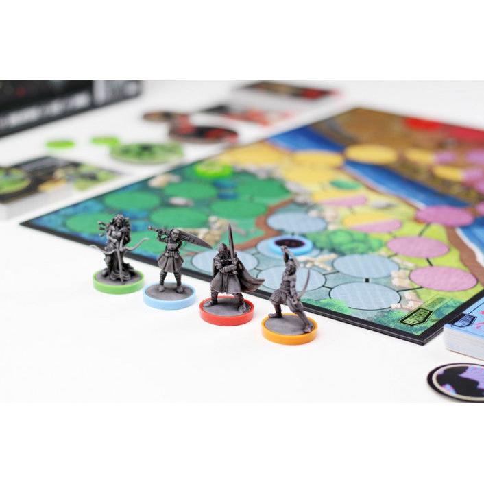 The game includes a double-sided board with two different battlefields, pre-washed miniatures for each hero, and custom life trackers that's brought to life with the stunning artwork of Oliver Barrett and the combined design teams of Restoration Games and Mondo Games.