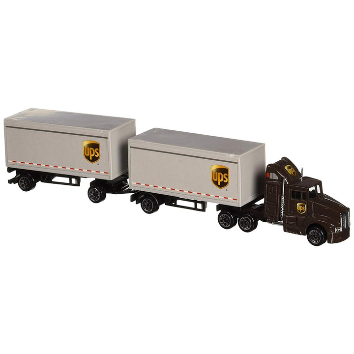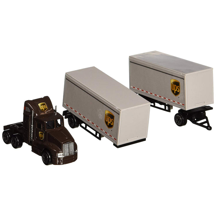 Feel power at your fingertips with this unparalleled delivery vehicle from RealToy! This UPS Tandem Tractor Trailer is a 1/87 scale scale diecast model replica. It's an exceptional addition for any delivery vehicle collection, and a must-have for hardcore UPS connoisseurs!
