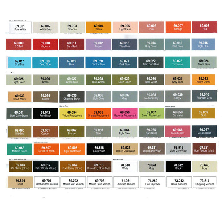 New formula acrylic colors with a satin finish, extra resistant and impact proof especially designed for airbrushing surfaces exposed to aggressive manipulation. The advanced formulation contains a revolutionary component that guarantees exceptional adherence on even the most difficult surfaces and offers great resistance to rough handling, impact, friction, scratches, etc. Once dry, the Mecha surface looks the same as the original plastic of the model, while yet the smallest details of the original remain clearly visible. The color range includes primers as well as special varnishes – also with an exclusive formulation- and a series of colors for aging and weathering effects. It is recommended to apply the Mecha colors in several layers on the previously primed surface; a few hours after application the colors will have dried to form a homogenous coating of extraordinary strength and resistance. Mecha Color can be airbrushed directly or diluted with Vallejo Airbrush Thinner or Flow Improver, and the colors can also be applied by brush. The compressor adjustment recommended is 15 – 20 PSI o 0.5 to 1 kg. For best airbrush maintenance we recommend using the Vallejo Airbrush Cleaner.