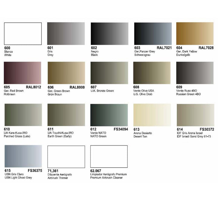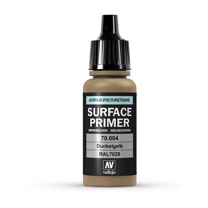 Surface Primer is available in a range of basic shades most frequently employed to prepare the surface of the model or miniature before starting the painting process. Primers can be applied on all surfaces, including resin, PVC, brass, white metal, or wood. The primer preserves even the smallest detail of a model and improves the adherence of the colors applied on this base. It is recommended to apply the Primer in various layers; the product dries rapidly and forms a homogenous film of extraordinary strength and resistance within a few hours after application. Surface Primer can be used directly or diluted with Vallejo Airbrush Thinner of Flow Improver. The recommended compressor settings are around 15-20 PSI or 0.5 to 1 kg. For the best maintenance of the airbrush, it is recommended to use the Vallejo Airbrush Cleaner.