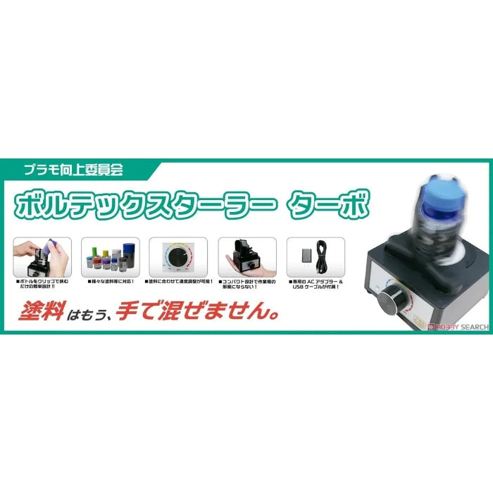 The Vortex Stirrer TURBO is a mixer designed specifically for plastic model paints that can rotate the paint in the bottle at high speed, stirring up the pigments that have accumulated at the bottom with the force of the vortex.