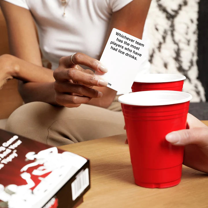 HOW TO PLAY: It’s simple — split into two teams and take turns drawing a card from the top of the deck. When it’s your turn, read the card out loud and either your team or the other will drink based on the prompt on the card. Lather, rinse, repeat until you’re buzzed! Designed for 3 to up to 20 players.