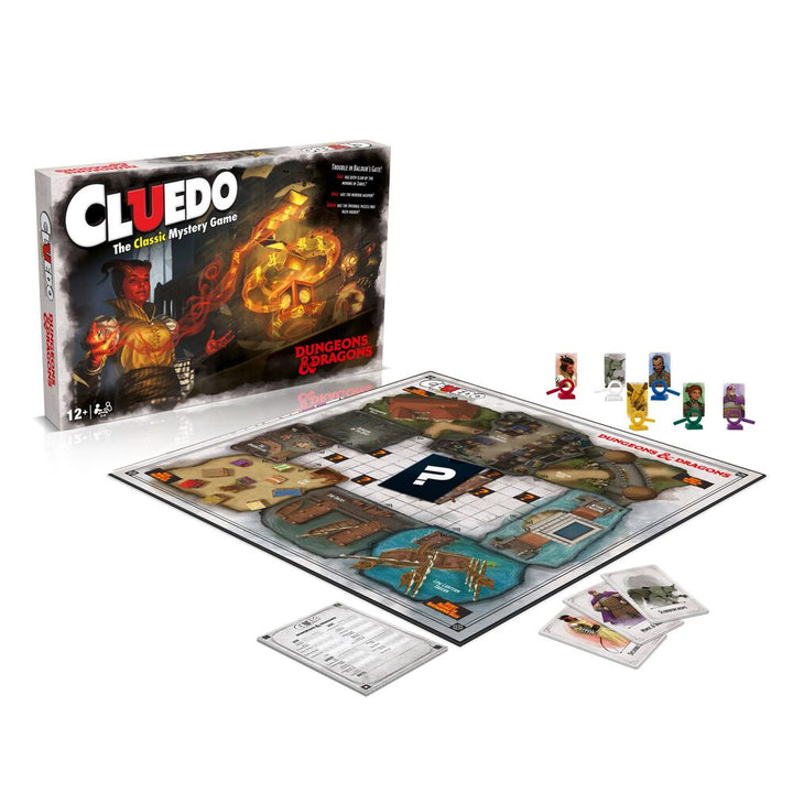 Join a Mysterious Journey... An Infernal Puzzle Box, delivered by a Hellrider of Elturel, has been stolen from the party of adventurers. Determined to reclaim their box of infernal secrets, one of Zariel’s minions has slain and secretly replaced an adventurer, unbeknownst to the rest of the members! In CLUEDO: Dungeons & Dragons, it’s up to you to determine WHO has been replaced by a devil in disguise, WHAT weapon was used in the execution, and WHERE in the Forgotten Realms the Infernal Puzzle Box could be hidden. Join Reya Mantlemorn, Falastar Fisk, Sylvira Savikas, Minsc & Boo, Lulu and Slobberchops as you journey across the board and eliminate evidence and suspects according to the clues your opponents reveal. Was Slobberchops murdered with the Horn of Blasting and is the puzzle box hidden in Twin Songs? Explore the Docks, the Wide, the Dungeon of the Dead and more in your quest across Baldur’s Gate for the truth.