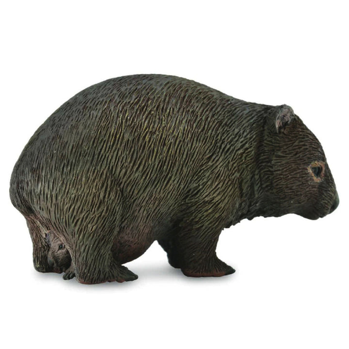 This figure feature a baby wombat in it's backwards pouch, adding very realistic detail. Like all CollectA models, the wombat is completely hand-painted all over. Fun facts about the Australian animal: One distinctive adaptation of wombats is their backwards pouch. The advantage of a backwards-facing pouch is that when digging, the wombat does not gather soil in its pouch over its young.