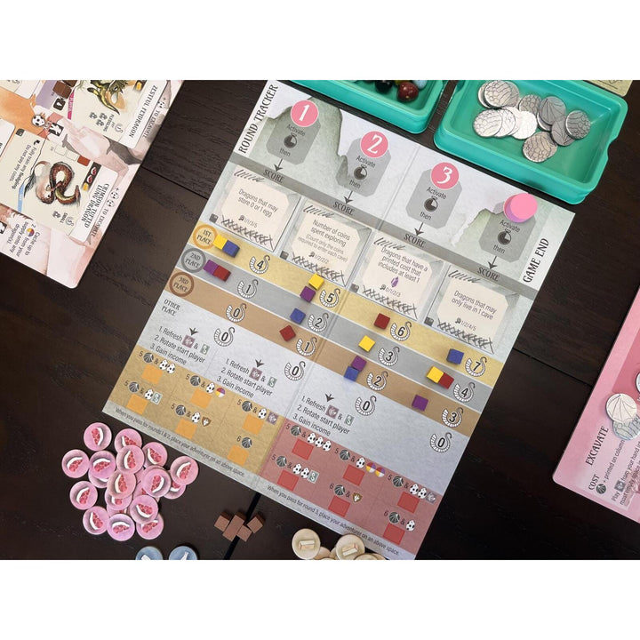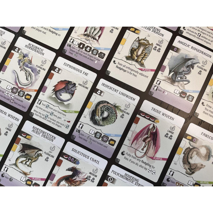 The expansion to Wyrmspan adds a wide variety of new dragons and caves, objective tiles, dragon guilds, and a new round tracker that presents you with an income choice when you pass for the round. Welcome to Wyrmspan: Dragon Academy, designed by Connie Vogelmann and illustrated by Clémentine Campardou!